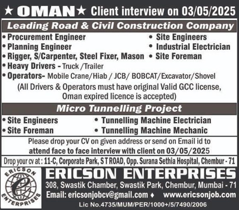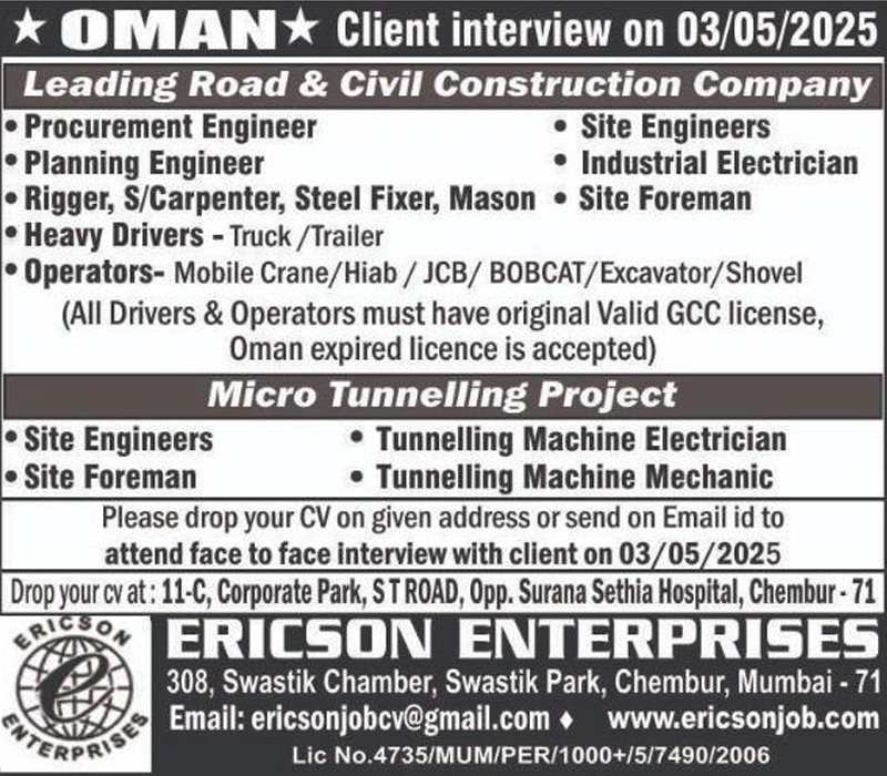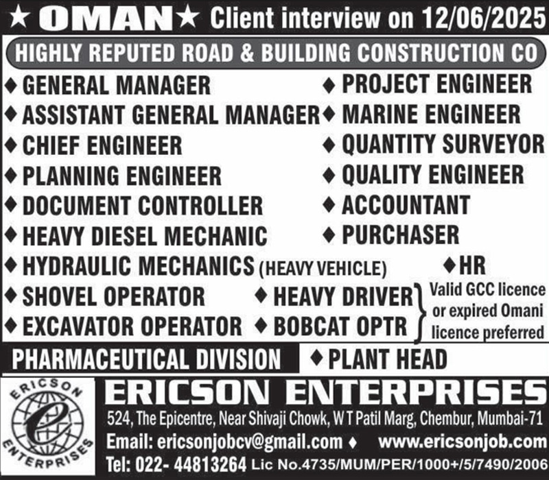 “ERICSON ENTERPRISES” an organization at par, with positive track record of success in the field of Human Resources Recruitment from Asia Region maintaining the trust and confidence with our esteemed major clients in the region of GULF, MIDDLE EAST, & EUROPE.
